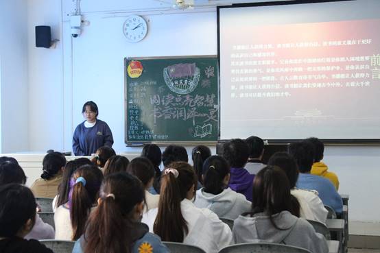 首先,在同学们激情澎湃的团歌声中,本次活动正式开始。接着,各班团支书带领同学们观看视频,让大家感悟阅读的用途与意义。随后,同学们积极地开展班级讨论,交流读书经验,并主动上台分享自己的读书心得体会。最后,全体同学齐唱校歌,伴随着同学们嘹亮的歌声,本次团课圆满结束!