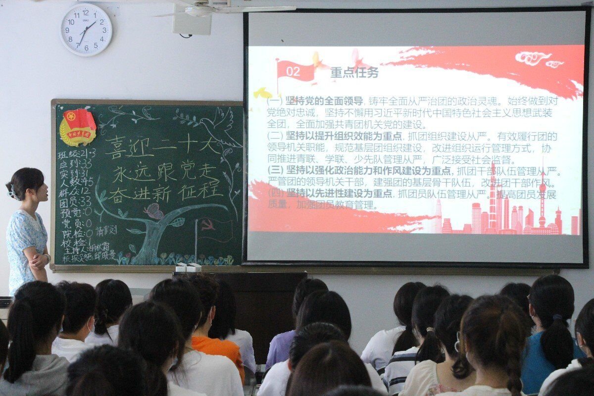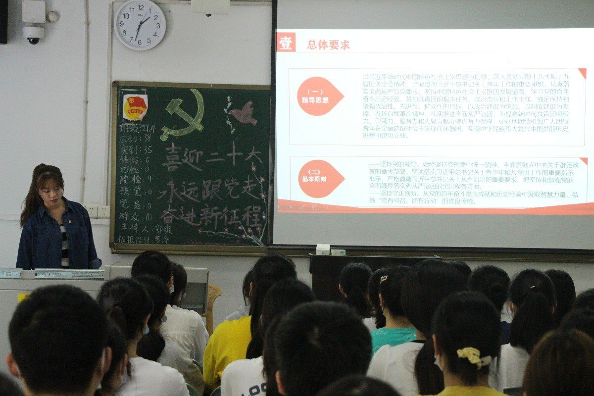 为喜迎二十大,坚定理想信念,加强学生思想政治引领,坚定前进步伐,奋进新征程,国际教育学部团总支于2022年3月16日在铭志楼开展了以“喜迎二十大、永远跟党走、奋进新征程”为主题的团组织活动。