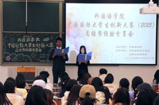 为深入学习贯彻习近平总书记关于教育的重要论述及相关回信精神,全面落实立德树人根本任务,切实提升学生创新能力,2025年10月31日,外国语学院中国国际大学生创新大赛(2025)总结暨经验分享会在临港二期8A101成功举办。外国语学院正处级组织员邱军、实验与创新中心教师李晓娟、创新创业工作助管曹和林以及6名“国创赛(2025)”获奖项目负责人共同参会,外国语学院创新创业俱乐部成员、各班级“双创”委员、学生代表共80多人聆听了分享。