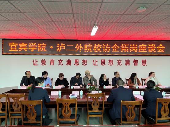 泸县二中外国语实验学校校长唐国成、合江天立学校执行校长王远波、大方金塔英才学校校长唐菊邦、毕节梁才学校副校长张玉彬、毕节东辰实验学校校长王进勋和织金育才学校校长杨佳辉等对宜宾学院一行的到来表示热烈欢迎,对我校毕业生,尤其是我部英语专业毕业生在其学校的工作表现给予高度的认可,并表示非常愿意继续招聘我校优秀的师范毕业生。同时,双方还聚焦师范生人才培养等方面进行了深入讨论和交流。