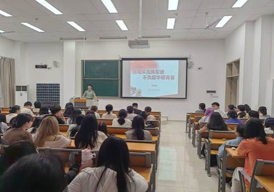 为深入贯彻落实习近平新时代中国特色社会主义思想和习近平强军思想,全面做好2025年学校征兵宣传教育工作,激发大学生参军入伍热情,2025年4月20日下午,宜宾学院外国语学院在临港校区二期8E104教室开展了“携笔从戎铸军魂 不负韶华砺青春”征兵宣传讲座,邀请了宜宾学院征兵站李峻岭老师主讲,部分2025届毕业生参会。