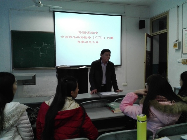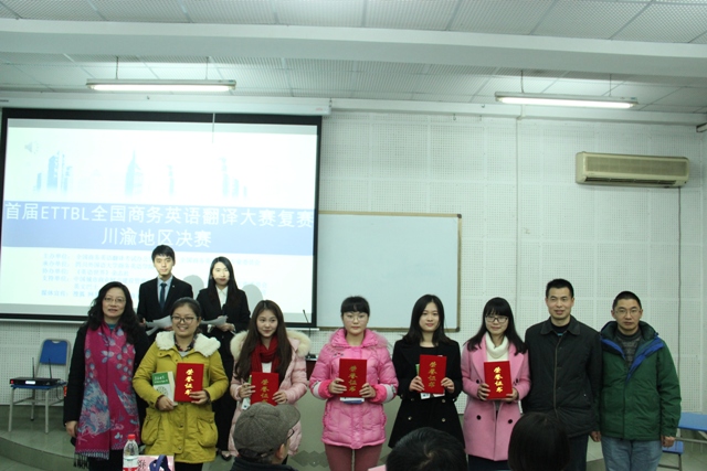2016年1月9日,在外国语学院领导杨南翎院长、赵亚玲副院长的关心和支持下,由樊军老师带队,外国语学院11名同学参加了在四川外国语大学商务英语学院举办的“首届ETTBL全国商务英语翻译大赛复赛川渝赛区决赛”。我院同学和来自电子科技大学、成都东软学院、长江师范学院、重庆第二师范学院以及四川外国语大学的其他31名参赛选手齐聚川外同台竞技。樊军老师还担任了本次比赛的评委。本次比赛将商务英语与翻译有机的结合起来,是一次成功且伟大的创新,对于提高学生的综合能力有很大的积极意义。比赛中,来自川渝地区六个高校的42名选手把自己的商务英语知识和翻译能力有机的结合起来,充分展现了自己的风采。最终,来自四川外国语大学的选手贾代春夺取了比赛的一等奖,我院彭小伊同学获得了三等奖(共计5名),李鸿林等其他三位同学获得了优秀奖(共计18名)。此次大赛的成功举办必将为我院在商务英语的学习上掀起一股新的浪潮。它不仅提升了同学们对商务英语的学习兴趣,也为同学们在日后的学习中树立了榜样,提升同学们的创新创业能力,塑造更好的学习风气!