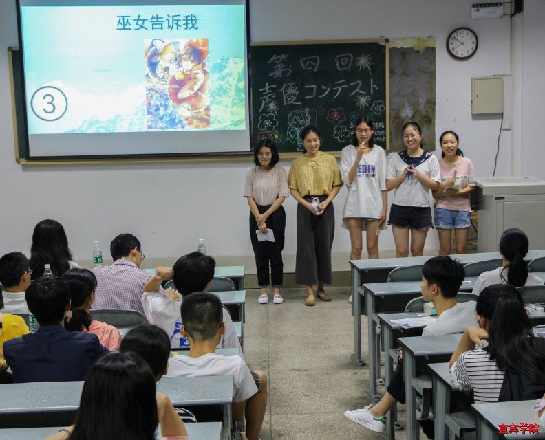 为了丰富广大同学的校园文化生活,激发大学生学习日语、应用日语的兴趣,展示当代大学生风采风貌,宜宾学院日语协会于2018年6月3日19:30在第二教学楼502教室举办了第四届声优大赛。通过将日语和配音结合的形式最大限度地激发同学们对日语学习的热情。