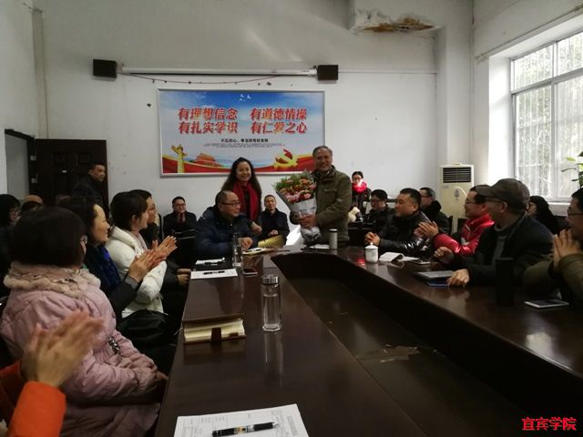 2018年1月10日下午14:30,外国语学院党总支、工会为即将退休的陈颖老师组织了光荣退休仪式,学院全体老师以及学生代参加。