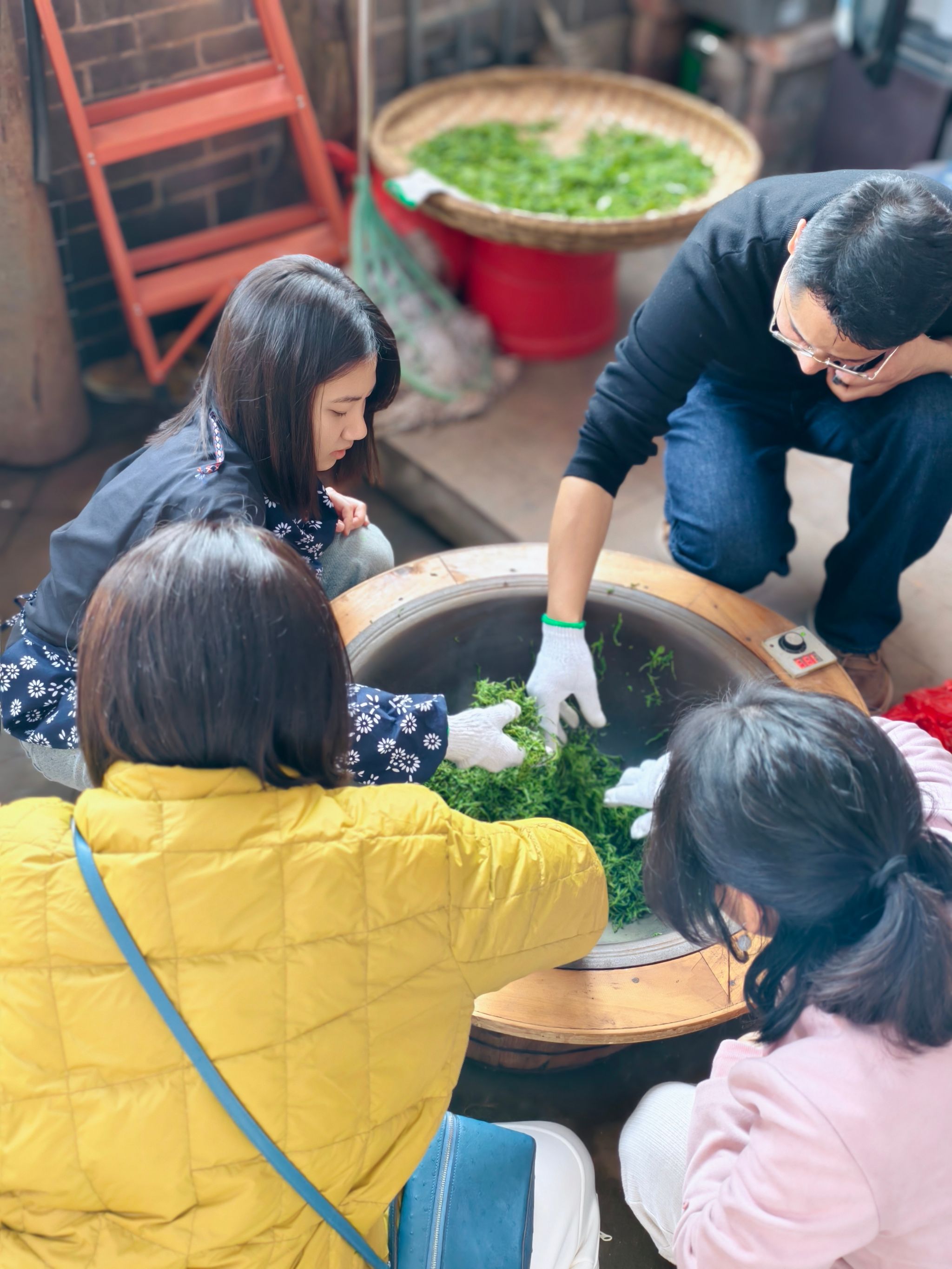 非遗制茶体验环节,专业制茶师傅细致讲解杀青、揉捻、理条等传统制茶工序的技巧与精髓,女老师们认真聆听、仔细观摩,随后纷纷上手实践。从鲜叶的分拣到杀青的火候把控,从揉捻的力度掌握到理条的形态整理,大家在亲手劳动中,近距离感受茶叶从鲜叶到成茶的蜕变过程,深刻体悟到传统茶文化的博大精深,更感受到非遗技艺背后代代相传的匠心与坚守,在慢时光中收获了别样的成长与感悟。