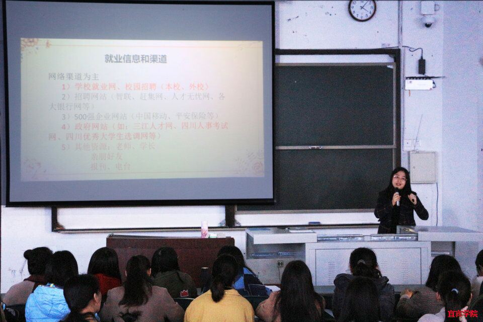 (本报讯)为提升2019届毕业生的就业能力,使其更好地走向工作岗位,2018年11月11日下午四点,外国语学院在第三教学楼A座202教室举办了毕业生就业指导会,此次会议由外国语学院辅导员魏春梅主持,2019届毕业生参加了会议。