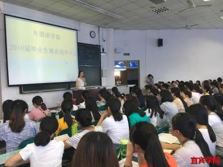 (本报讯)为了使2018届毕业生认清就业形势、了解就业政策、正确认识和解决就业过程中遇到的问题,在即将到来的就业工作中能从容不迫、圆满的选择适合自己的职业,2017年6月21日14:30,外国语学院2018届毕业生就业动员大会在第三教学楼A座202正式召开。党总支书记罗春雁,党总支副书记温萍,团总支副书记袁超,阮活老师和王星老师以及2018届全体毕业生参加了本次动员大会。