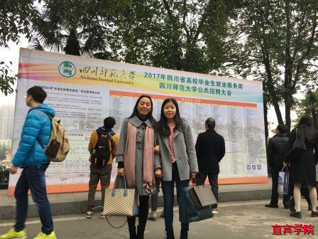 (本报讯)为给高校毕业生就业和用人单位人才选聘搭建便捷、宽广的双向选择平台,营造良好的校园供需见面氛围,经四川师范大学和四川省人才交流中心共同商议,于2017年11月联合举办了“2017年全国高校毕业生就业服务周四川师范大学公共招聘大会”。外国语学院副院长赵亚玲、辅导员王星和何丹丽于2017年11月24日前往四川师范大学狮子山校区参加此次公共招聘大会考察就业市场。