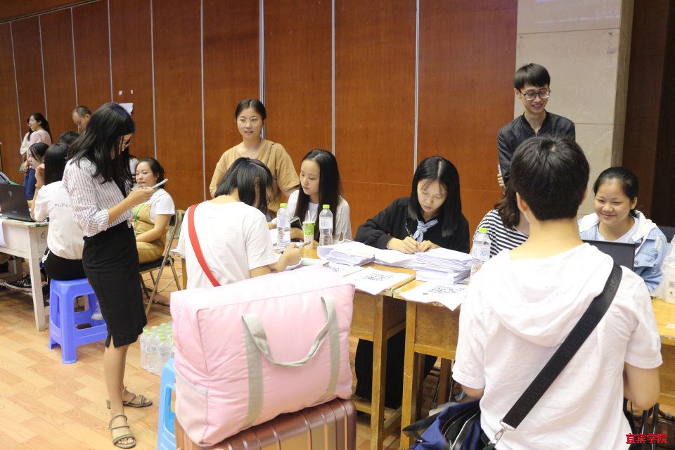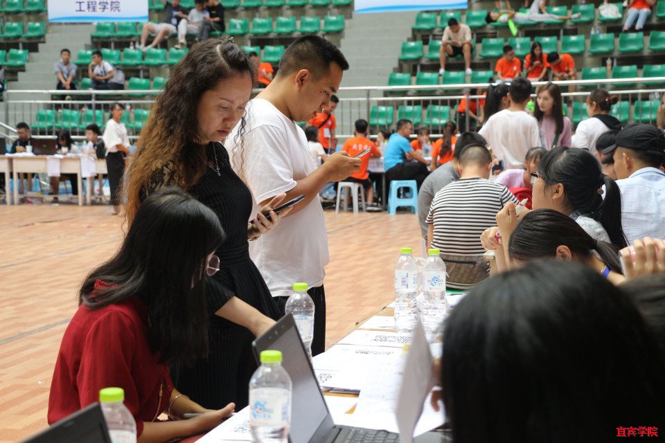 宜宾学院外国语学院于2018年9月6日下午2点在体育馆展开了新学年的迎新工作,迎接新的同学,新的希望。在此次的迎新活动中,宜宾学院王玲院长莅临现场视察工作,外国语学院党总支副书记温萍,团总支副书记袁超,专职辅导员王星全程陪同,确保迎新工作的顺利完成。外国语学院团总支学生会各成员及迎新志愿者分布于各个接待点,各司其职,以良好的精神风貌为每一位新生与家长提供最热情的服务与帮助。他们奔走在报道点和宿舍楼之间,热情、细心地服务于每一位新生,让他们感受到温馨的集体生活氛围以及全面贴心的服务。在新生报到处,工作人员们亲切问候、耐心答疑,为新生们讲解报道事项,确保新生能够顺利报道,也体现着外国语学院笑迎新生、用心服务的精神。此外,我院还给每一位新生精心准备了近期各项事情安排表以及校园地图,以便新生尽快熟悉校园环境,为接下来的学习生活做好准备。