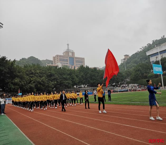 伴随着习习秋风,进行曲骤然响起,运动会正式拉开帷幕。各学院代表方队,教职工代表方队,裁判员方队依次入场,齐步向主席台走来。他们个个衣着统一,面带笑容,昂首阔步,展示出宜宾学院学子特有的青春与活力。外国语学院代表方队在我院杨南翎院长、罗春雁书记的带领下他们昂首阔步、斗志昂扬,迈着坚定的步伐走向主席台。他们身着黄色卫衣,黑色长裤,手系彩带,每一位队员都朝气蓬勃。方队表演结束后,我校党委副书记为此次运动会致辞,为每一个运动健儿加油助威,并且对于本次运动会给予高度期望。紧接着运动员代表,裁判员代表对本次运动会郑重宣誓,最后由院长王玲正式宣布运动会正式开始!台下响起了热烈的掌声。在同学们兴奋的欢呼雀跃声中,开幕式圆满落下帷幕,各项比赛正式开始。