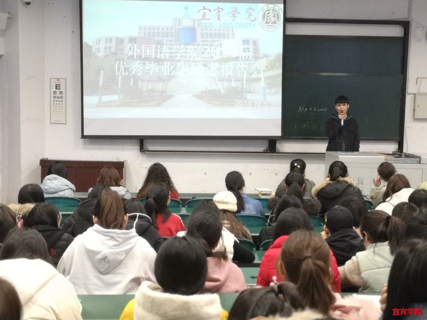 (本报讯)为了激励本院学生奋发向上,帮助学生树立明确的学习目标,外国语学院优秀毕业生报告会于2018年12月5日14:00在硕勋楼A座202教室正式召开。外国语学院党总支副书记温萍、辅导员魏春梅老师、何丹丽老师出席了本次活动,我院200多名学生到场聆听。