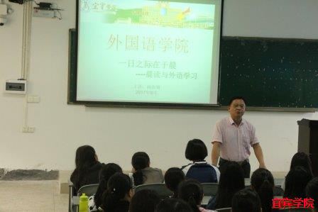 (本报讯)一年之计在于春,一日之计在于晨。作为外国语学院的学生们,更当充分利用晨读的时间进行练习和学习。2017年9月27日下午3:30,在第二教学楼502教室我院举办了以“一日之计在于晨之晨读与外语学习”为主题的年级会,会议由杨南翎院长主持,2017级全体学生及相关辅导员参加了本次会议。