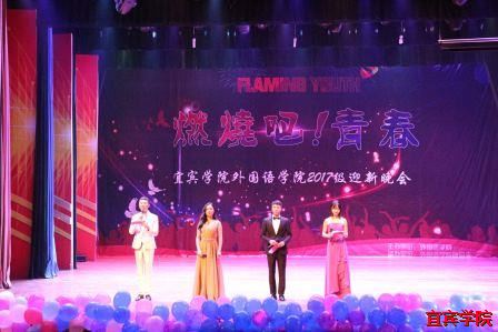 (本报讯)激情似火,青春如光。为迎接2017级新生的到来,2017年11月5日19:00,由外国语学院举办的迎新晚会"Flaming Youth"于三平台演播厅盛大开幕。莅临本次晚会的嘉宾有外国语学院的各位领导和老师,校学生工作人员。