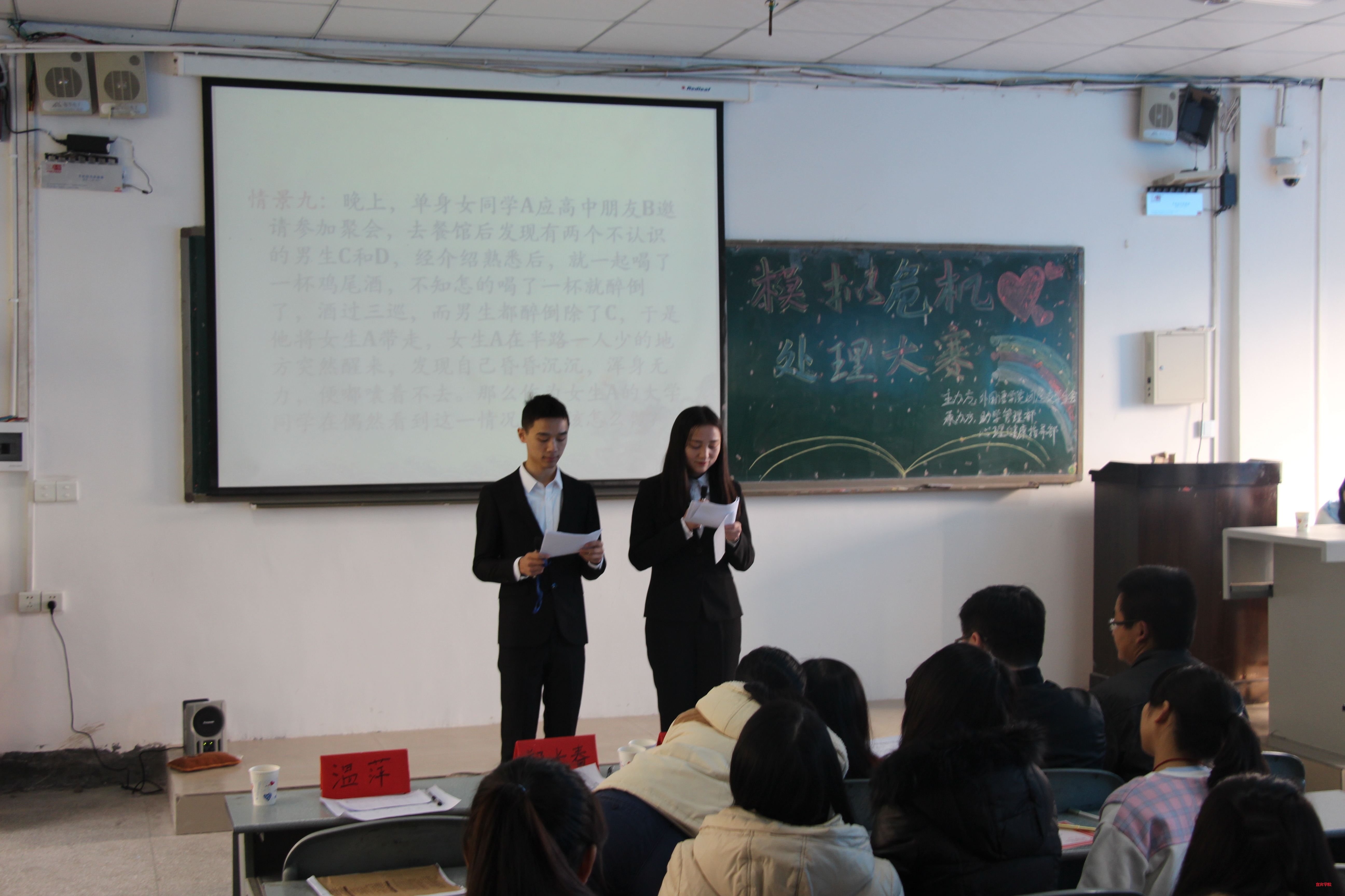 (本报讯)外国语学院模拟危机处理大赛自开赛以来各个班学生踊跃报名,热情参与,经过初赛的选拔。2016年12月7日,外国语学院于我校第二教学楼502教室迎来了由外国语学院团总支主办,外国语学院助学管理部和心理健康部承办外国语学院模拟危机处理大赛的决赛。