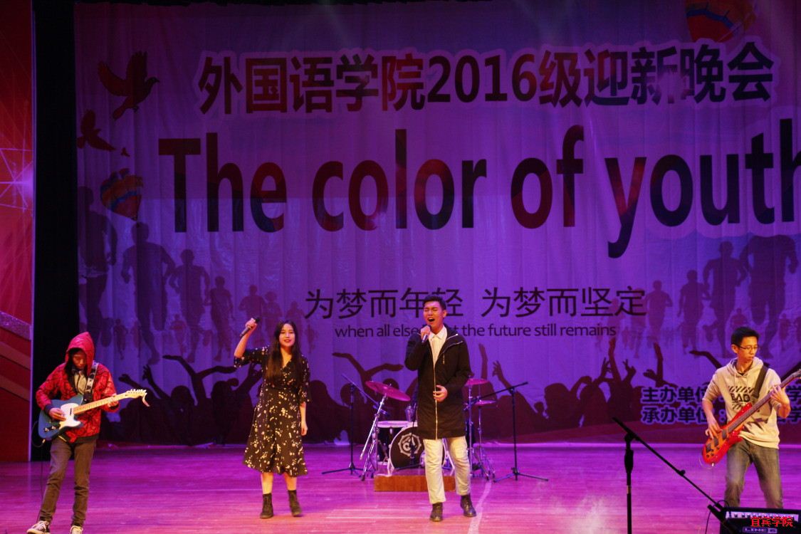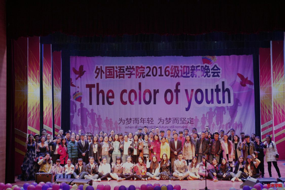 (本报讯)为迎接2016级新生的到来,展现我院学子风采,2016年11月13日,由外国语学院主办的以“The Color of Youth”为主题的迎新晚会在学校演播厅隆重举行。外国语学院院长杨南翎向致词,并向我院新生致以热烈的欢迎。整场迎新晚会激情饱满、热力四射,为新生同学即将开启的丰富多彩的大学生活进行了最完美的预演。