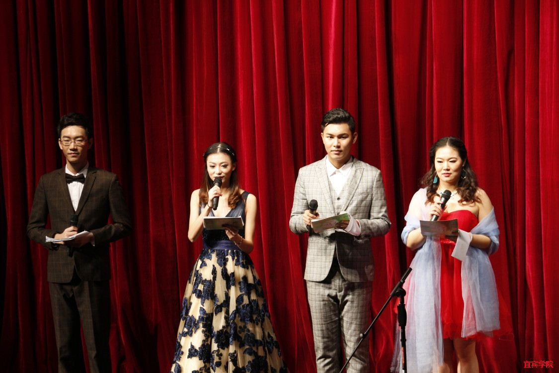 2016级专职辅导员沈文静老师稿大家带来了一首悦耳动听的日语歌曲《泪光闪闪》,余音袅袅,绕梁不绝,使同学们的情绪也随着音乐而律动。幽默搞笑的相声表演将同学们带进了一个充满欢乐世界,将并将晚会推向第一个高潮。活力四射的乐队表演瞬间带动了场内气氛,同学们也跟着嗨起来,欢呼不止,掌声不断;体现中国特色的民族舞《美人吟》更是一场视觉盛宴。与众不同的小品《新闻联播2》融入了各类时事新闻、许多网络元素、时下流行语等等,不仅剧本创新搞笑演员们的表现也是十分的抢眼。新颖的《小人舞》带给了观众们一个大大的的惊喜,场下欢呼声、呐喊声此起彼伏;由帅哥、美女表演的宅舞《恋爱循环》展现了满满的恋爱感。此次晚会精彩不断,高潮迭起,在抽奖环节和游戏环节,同学们都积极主动参与其中,场内气氛活跃,将晚会现场的气氛一次次推向高潮。最后由压轴节目《四语小合唱》为本场晚会划上了圆满的句号,歌声绽放着青春与梦想的光芒。