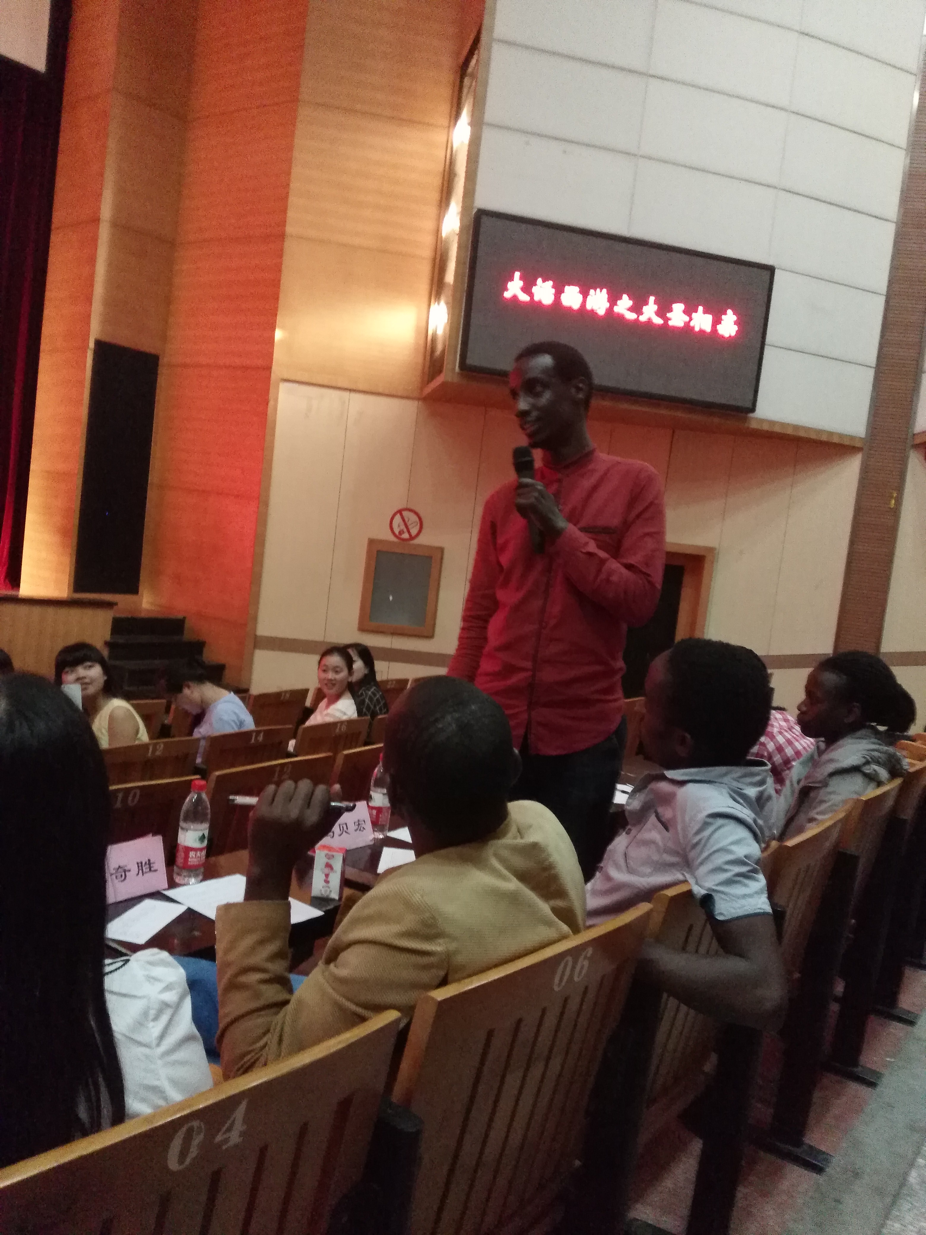 比赛尾声,李灵姝老师对本次比赛进行了点评,并加以充分的肯定对全体工作人员和现场观众诚意致谢。Tim和乌干达学员代表马贝宏也相继发表了自己对本场比赛的看法。最后全体评委,演员及幕后工作人员一起上台合影留念,为本次比赛画上了完美的句号。