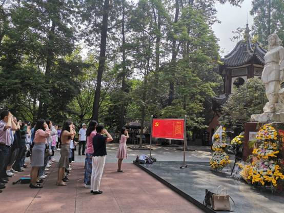 在中国共产党成立一百周年之际,为铭记党的历史,提升教师党员、干部的党性修养,切实做到学史明理、学史增信、学史崇德、学史力行,5月12日下午,宜宾学院国际教育学部党总支书记罗春雁率队前往翠屏山赵一曼纪念馆,开展“重温誓词葆初心,革命薪火代代传”党史学习教育。国际教育学部教师党支部全体成员参加学习。在纪念馆门前,全体教师党员庄严站立,向赵一曼烈士的塑像深深地三鞠躬,表达深切缅怀和无限敬仰之情。随后,党员们举起右臂,紧握右拳,在支部书记赵亚玲同志的领誓下,重温入党宣誓时的承诺与决心。