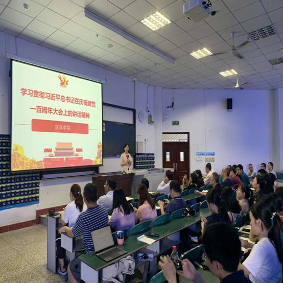 之后,王玲院长带领大家学习了四川省委学习贯彻“七一”重要讲话的部署要求,明确了宜宾学院党委全面抓好 “七一”重要讲话精神的贯彻落实的工作部署,要求将“七一”重要讲话精神的贯彻落实同落实学校“2468”总体谋划、创建党建示范校等具体实际结合起来,立足本职工作,解决实际问题,促进事业发展。