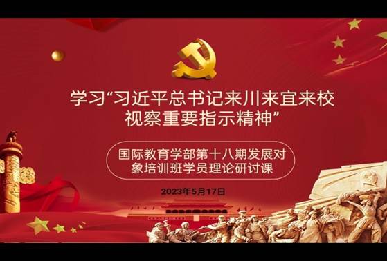 为深入学习贯彻习近平总书记来川来宜来校视察重要指示精神,2023年5月17日中午,党校第十八期发展对象培训班国际教育学部学员在临港公共教学楼二A102教室开展以学习“习近平总书记来川来宜来校视察重要指示精神”为主题的理论研讨课,本次理论研讨课由国际教育学部团总支培训部干事刘欣主持。
